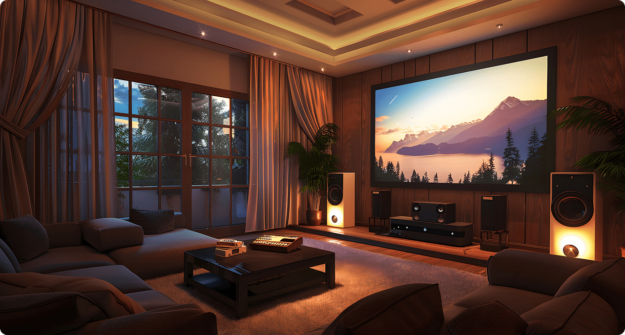 Whether you want background music that follows you throughout the house or a true cinematic environment with surround sound and hidden wiring — we handle it all, from planning to fine-tuning.